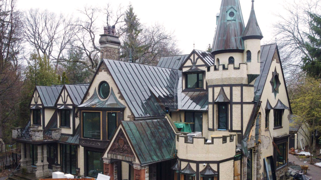 You need to remember that cleaning and polishing a copper roof requires the use of specialized chemicals. The best commercial-grade solutions aren’t available in general stores of Toronto. We at Royal Roofing Inc. purchase our supplies from leading companies that specialize in professional roofing solutions. They are recognized by copper roofing manufacturers as treatments that are safe to use with their products. These cleaners, coatings, other treatments can effectively increase the roof’s lifespan and can restore the natural shine of copper even if it has been neglected for years. Our experienced technicians will assess the metal condition and pick solutions that will be effective for your particular case.